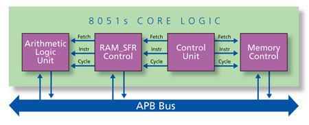 Actel's Core8051 and Core8051s microcontroller IP (intellectual property) cores can be used with any of Actel's nonvolatile, single-chip FPGAs including: Fusion, ProASIC3, ProASIC Plus, ProASIC3L, Axcelerator, SX-A and RTSX-S, RTAX-S/SL. Both cores execute all ASM51 instructions and execute most of them in a single clock cycle. Core8051 features a number of fixed peripheral functions including: two timers, a programmable serial port, 13 four-priority-level interrupts, and 32 I/O ports. Core8051s implements the 8051 architecture with all of the peripheral functions removed and an APB (Advanced Peripheral Bus) interface added to the SFR interface. This allows designers to connect any APB peripheral IP function and configure the core to meet their application needs.