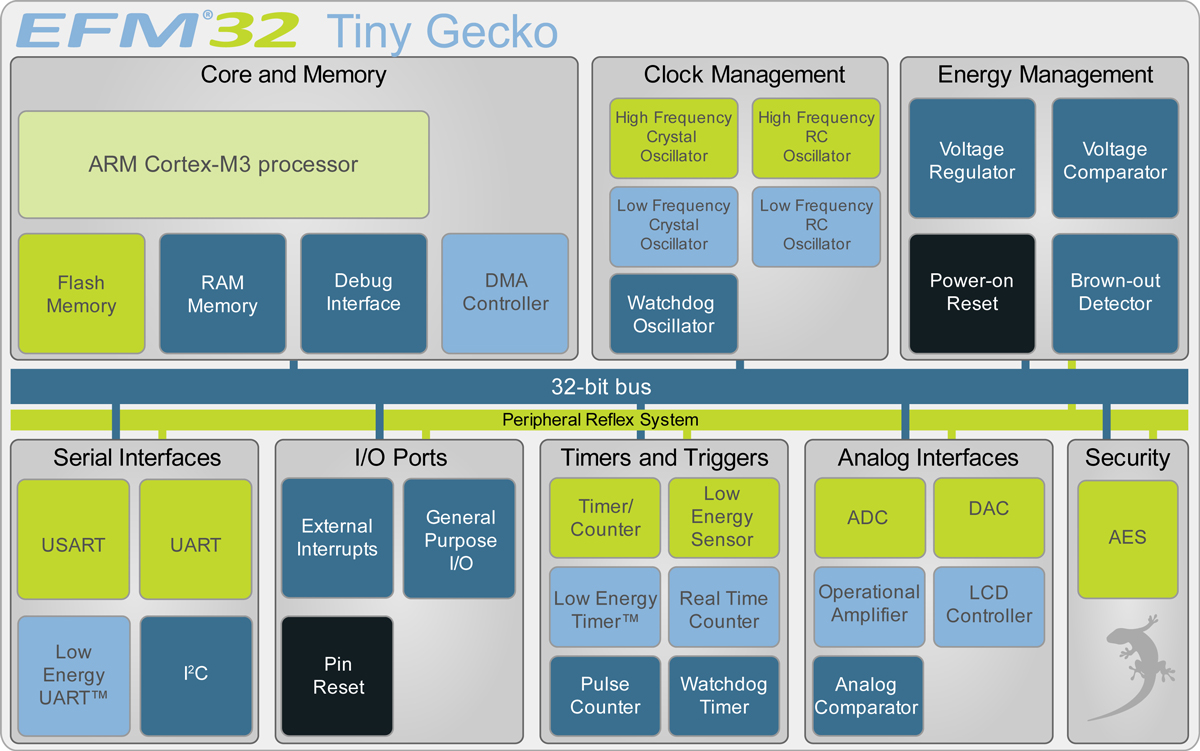 Because the QFN32 and QFN64 Tiny Gecko microcontrollers are pin and software compatible with the larger Gecko microcontrollers, developers can begin development using Gecko and migrate to Tiny Gecko.