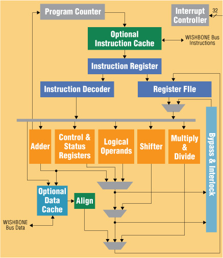 The LatticeMico32 is a configurable 32-bit Harvard architecture soft microprocessor core for Lattice Field Programmable Gate Array (FPGA) devices. By combining a 32-bit wide instruction set with 32 general purpose registers, the LatticeMico32 provides the performance and flexibility suitable for a wide variety of markets. Using a Reduced Instruction Set Computer (RISC) architecture, the core consumes minimal device resources, while maintaining the performance required for a broad application set. The associated LatticeMico32 System Development Tools enable designers to implement microprocessor designs. The tools enable processor platform definition, software development and debug. The LatticeMico32 is available as source code under the Lattice open IP (intellectual property) core license.