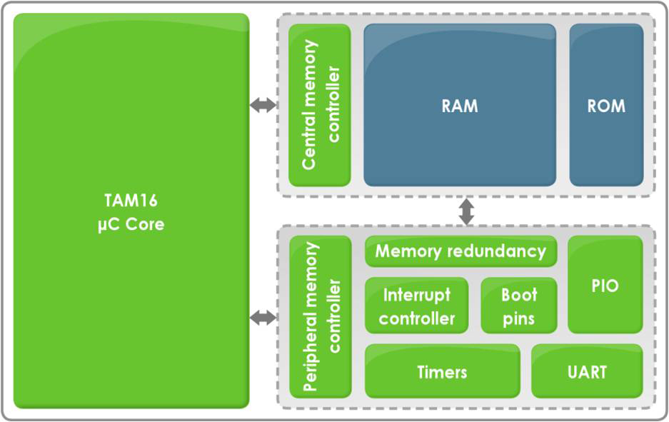 TAM16 is Tiempo's clockless 16-bit microcontroller core that offers a complete instruction set with adapted software development kit targeting ultra-low power applications. This IP (intellectual property) is designed in Tiempo's fully asynchronous and delay insensitive technology that allows ultra-low power consumption, ultra-low noise, ultra-low EMI, as well as robustness against attacks by power analysis and fault injections. The TAM16 instruction set can be easily customized in order to make it binary-compatible with any developer proprietary microcontroller, allowing the (re)use of customer preferred SDKs -standard or proprietary- with TAM16 and consequently the execution of existing code on TAM16.