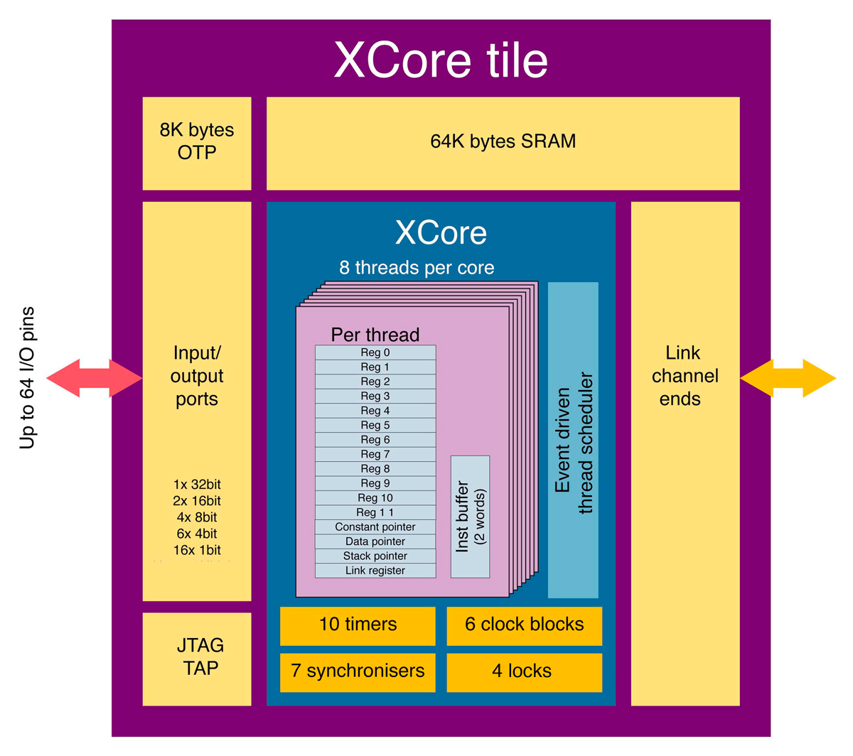 The XS1-G is a family of general-purpose Software Defined Silicon devices. It consists of members with 1, 2, and 4 processor cores. Each core supports up to 8 concurrent real-time tasks (400MIPS) with 5ns I/O granularity that enable it to target basic to advanced systems.